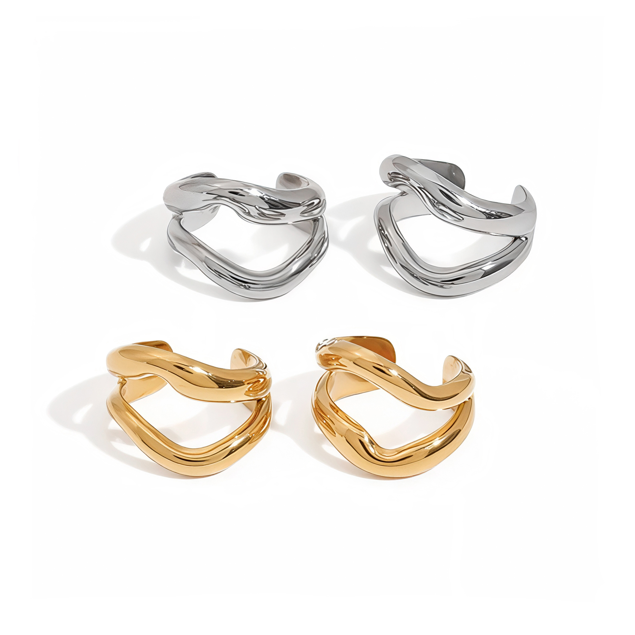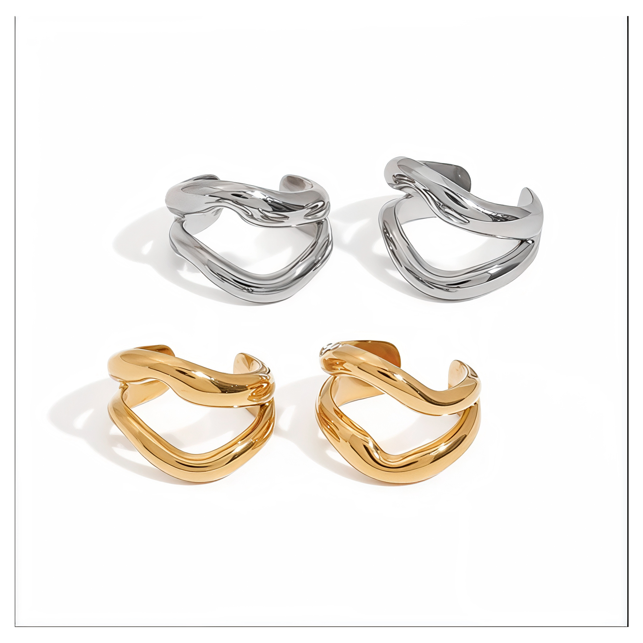 кафф выполнен из стали с позолотой 24К или покрытием белым родием